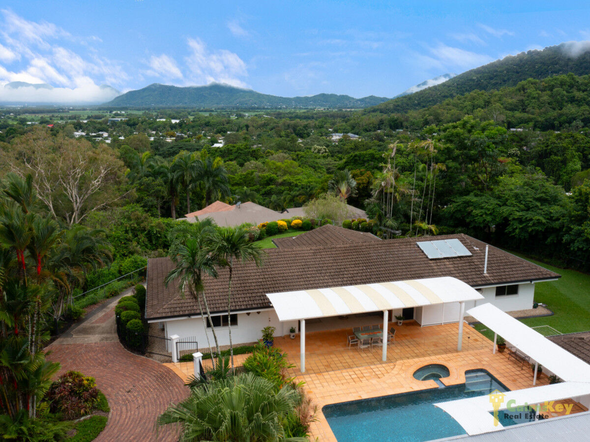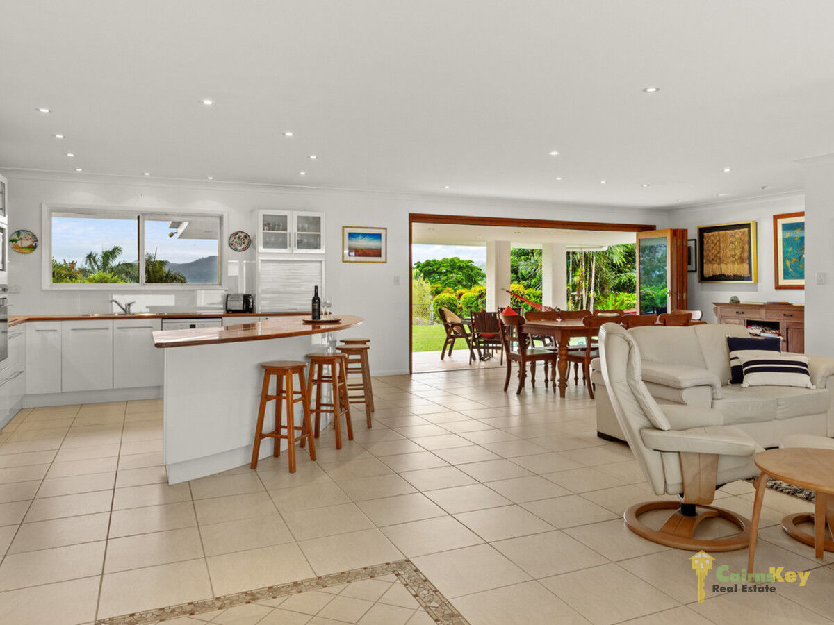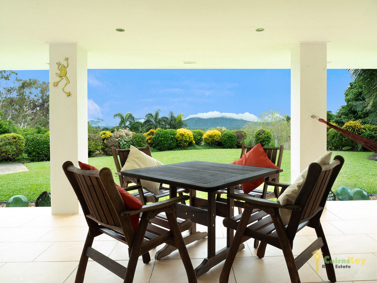 Welcome to elevated tropical paradise set on the hillside boasting uninterrupted scenic mountain views to the Macalister range. This single story spacious 4 bedroom 3 bathroom residence is an entertainers delight with large indoor outdoor living spaces with seamless flow thanks to the classy bi-fold doors that open right up and is perfectly positioned to capture the breezes and allow the natural light in.