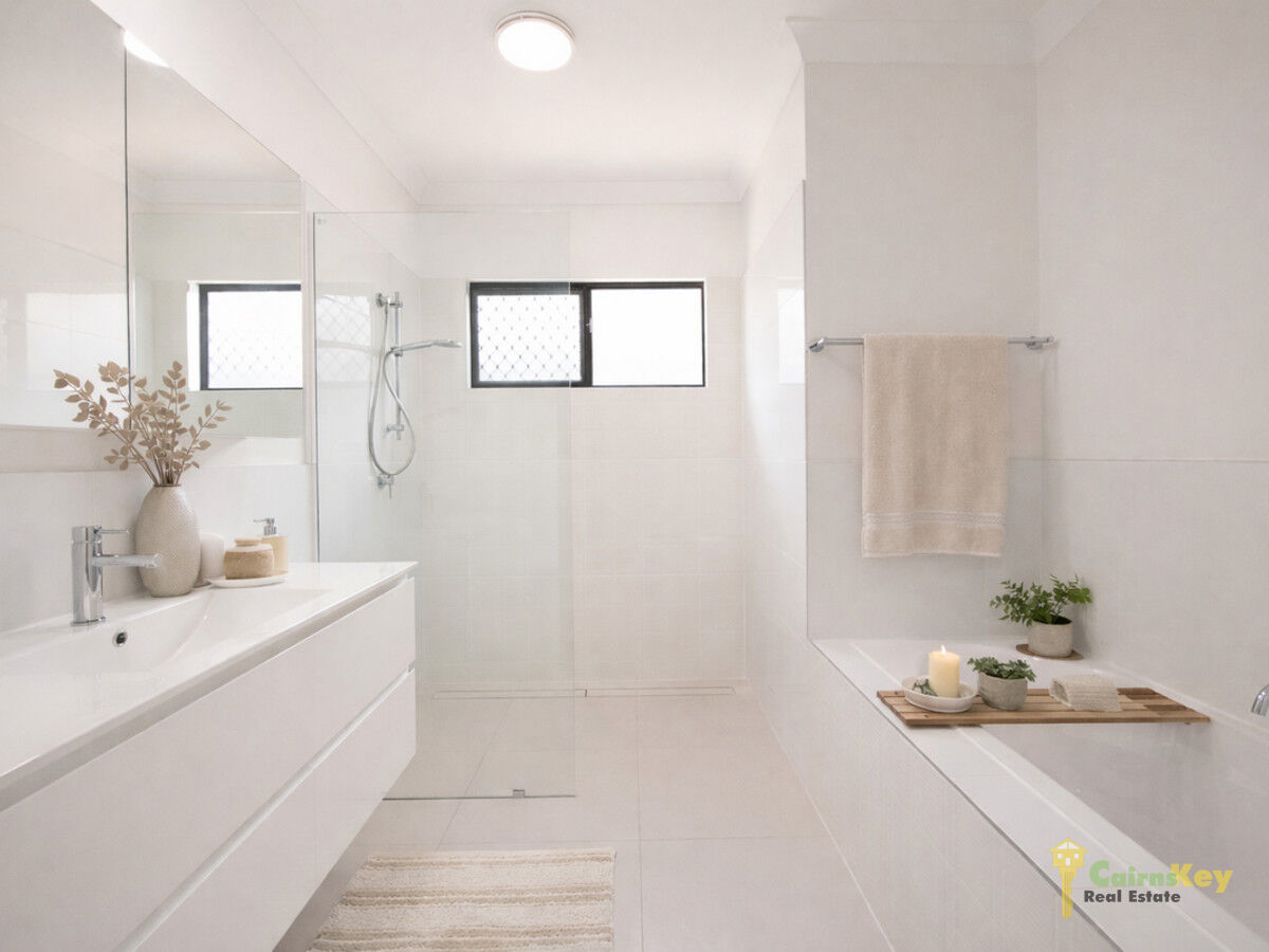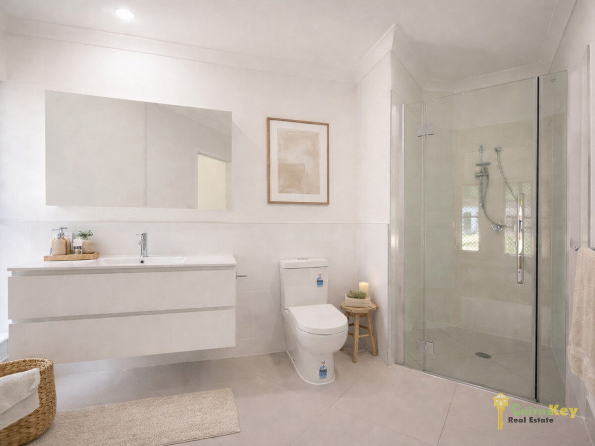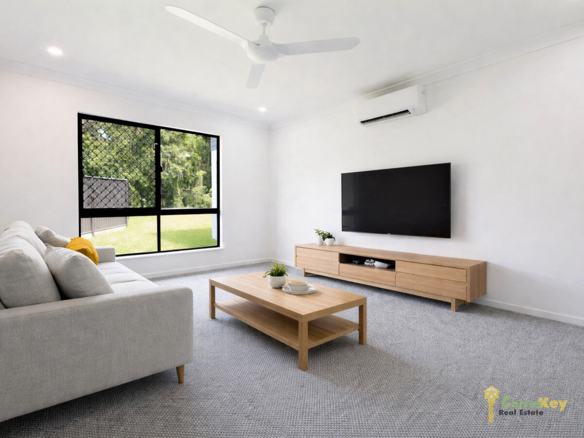 With low maintenance yard you’ll love the landscaping front and rear with auto irrigation. With 10.56kw solar system, exposed aggregate driveway, security screens to all sliding doors and windows, letterbox and even clothesline everything has been done for you to just move in and enjoy the tropical beaches lifestyle! Chat to the team on site during inspection times or contact Cairns Key Real Estate on 4042 6000 to discuss your options.