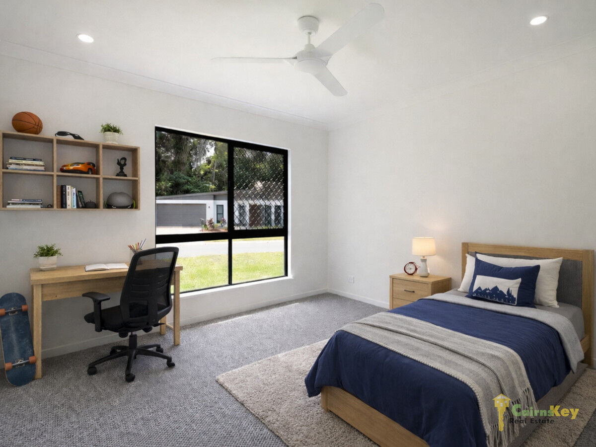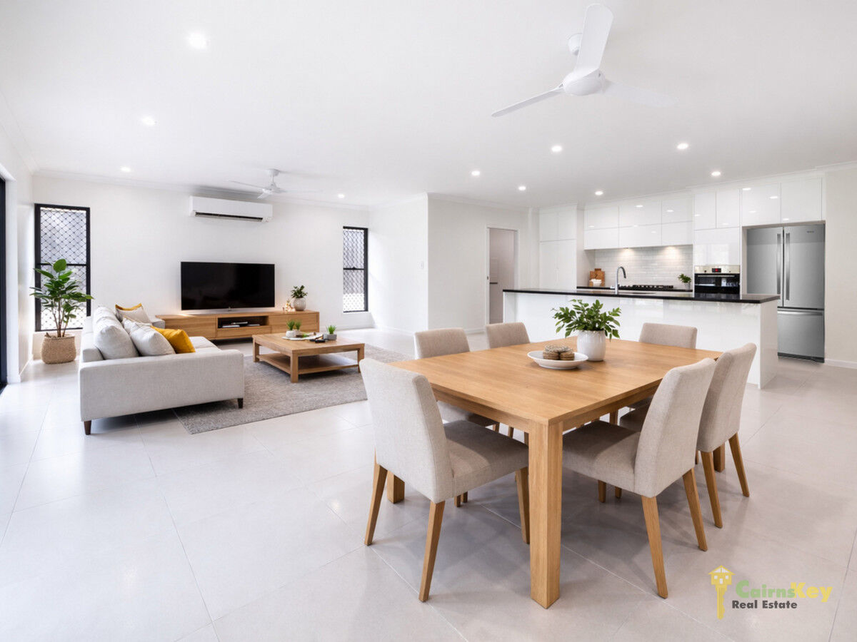 With low maintenance yard you’ll love the landscaping front and rear with auto irrigation. With 10.56kw solar system, exposed aggregate driveway, security screens to all sliding doors and windows, letterbox and even clothesline everything has been done for you to just move in and enjoy the tropical beaches lifestyle! Chat to the team on site during inspection times or contact Cairns Key Real Estate on 4042 6000 to discuss your options.
