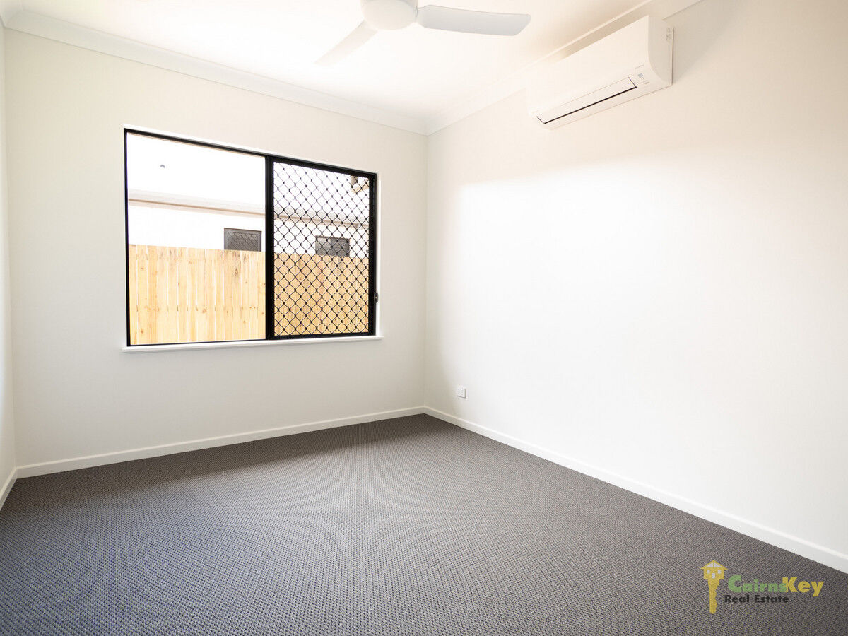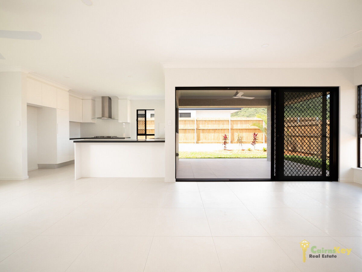 The kitchen, dining and living areas fill the rear of the home with the kitchen boasting plenty of cupboard space, black stone bench tops paired with a white plain tile splashback, high gloss cabinetry, quality appliances and fixtures and fittings. The living space opens up to the patio via the 3 segment, sliding door to create the classic indoor/outdoor tropical lifestyle!