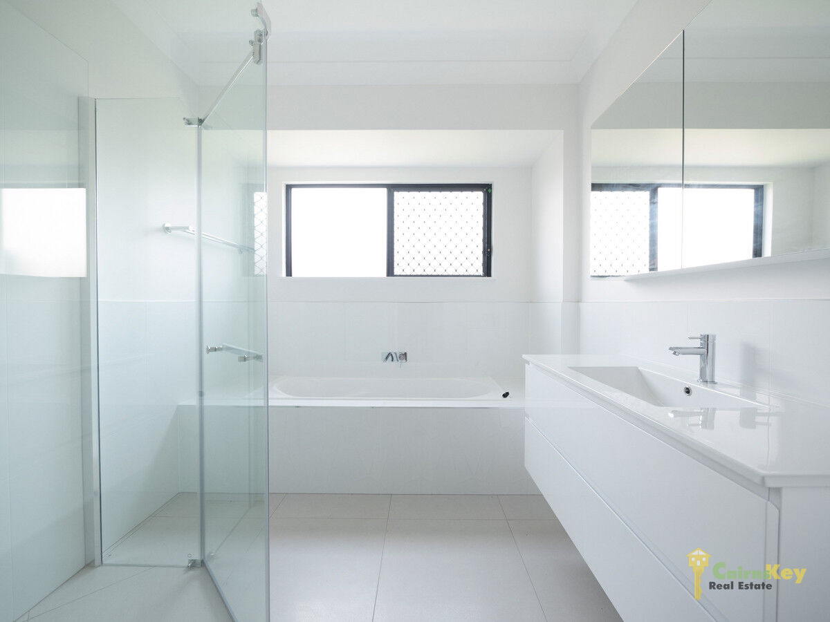 Bedrooms 2-4 come with built in robes and share a large 2nd bathroom that includes floating vanity, pentagonal shaped shower and bathtub.